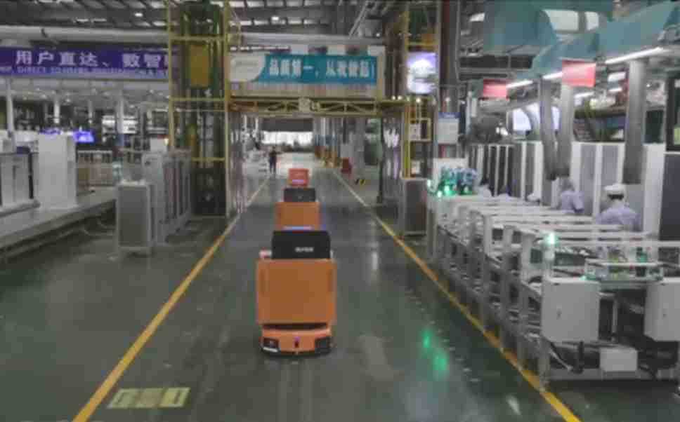 为车载冰箱物流配送打造的智能解决方案,,,包含产中物流通过潜伏举升AMR搬运至线边,,,产后成品物流智能仓储,,,流程包含产中物流智能齐套入库,,,线边安灯叫料AMR智能配送至线边,,,,成品入库、、、、出库,,,通过无人堆高车机器人,,,智能仓储管理替代人工作业管理,,,实现更高存储、、、、更高效率、、更具柔性化的解决方案。。。